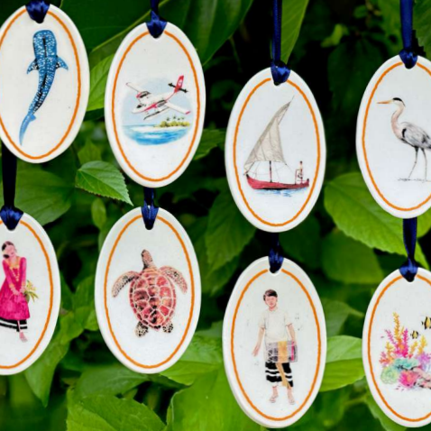 This Festive Season, take home a limited-edition ornament that unites beauty with purpose. Featuring original artwork by self-taught Maldivian watercolor artist Shimha Shakeeb and hand-crafted by The Clay Studio in Hulhumalé, each piece is a collectible work of art.