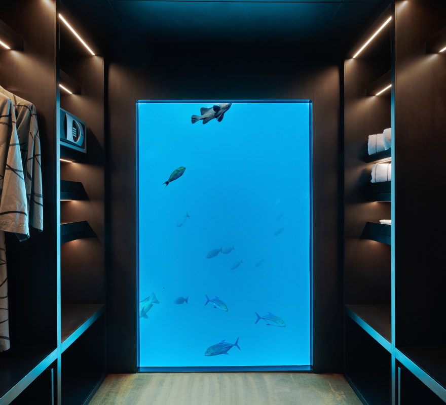 Make your way down the spiral staircase or elevator to your private underwater aquarium and architectural masterpiece.